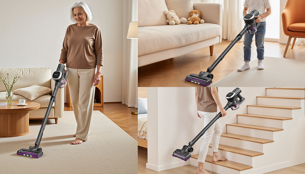 The vacuum operates quietly, allowing you to clean anytime without disturbing family members, pets, or neighbors. Enjoy a more comfortable cleaning experience with reduced noise levels.