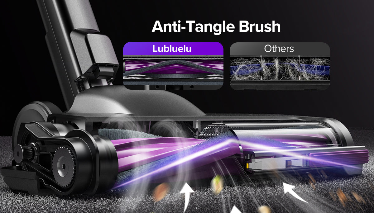 The enhanced floor brush features a high-power motor and oversized rollers for smoother movement across carpets, tiles, hardwood floors, and other surfaces. The V-shaped anti-tangle brush effectively channels hair into the suction path, reducing hair wrap by up to 99%, especially ideal for homes with pets or long hair.
