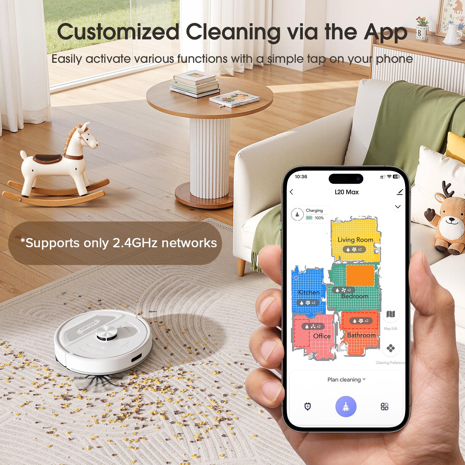 IL L20 Max porta la pulizia automatizzata a livelli senza precedenti integrando un sofisticato 2.5L stazione autosvuotante con l'acclamato LPiattaforma 20 Ultra. Progettato per i proprietari di casa più esigenti, questo robot aspirapolvere avanzato combina una potente aspirazione da 5500 Pa, una navigazione laser LDS di precisione e funzionalità di lavaggio intelligenti per offrire fino a 60 giorni di pulizia completamente a mani libere. Scopri il massimo della praticità, dove la tecnologia all'avanguardia incontra la praticità della vita quotidiana.