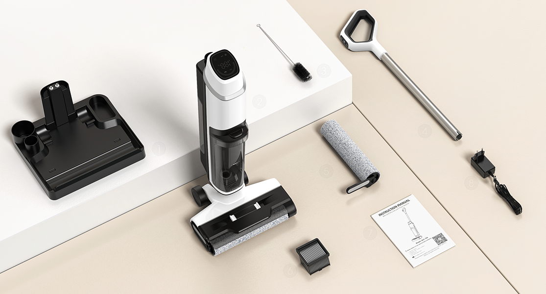 Stanco di passare continuamente da aspirapolvere a lavapavimenti e secchio? Scopri BVC-T8A, la soluzione cordless all-in-one che aspira, lava e pulisce contemporaneamente. Progettato per le case moderne, rimuove senza sforzo sporco, liquidi e peli di animali dai pavimenti duri, lasciando le superfici pulite e straordinariamente asciutte in soli 3 minuti. Riprenditi il tuo tempo e trasforma le pulizie da un lavoro noioso a un'attività semplice e appagante.