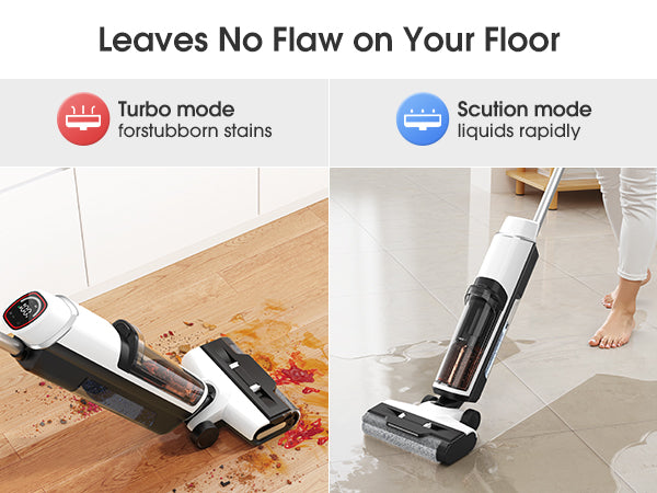 Controllo intelligente dell'aspirazione: passa facilmente da una modalità all'altra per soddisfare ogni esigenza. Modalità standard: perfetta per l'aspirazione e il lavaggio quotidiani. Modalità aspirazione: aspirazione potenziata per l'aspirazione a secco mirata su tappeti e moquette. Modalità turbo: massima potenza per lo sporco più ostinato e appiccicoso e per le aree più sporche.