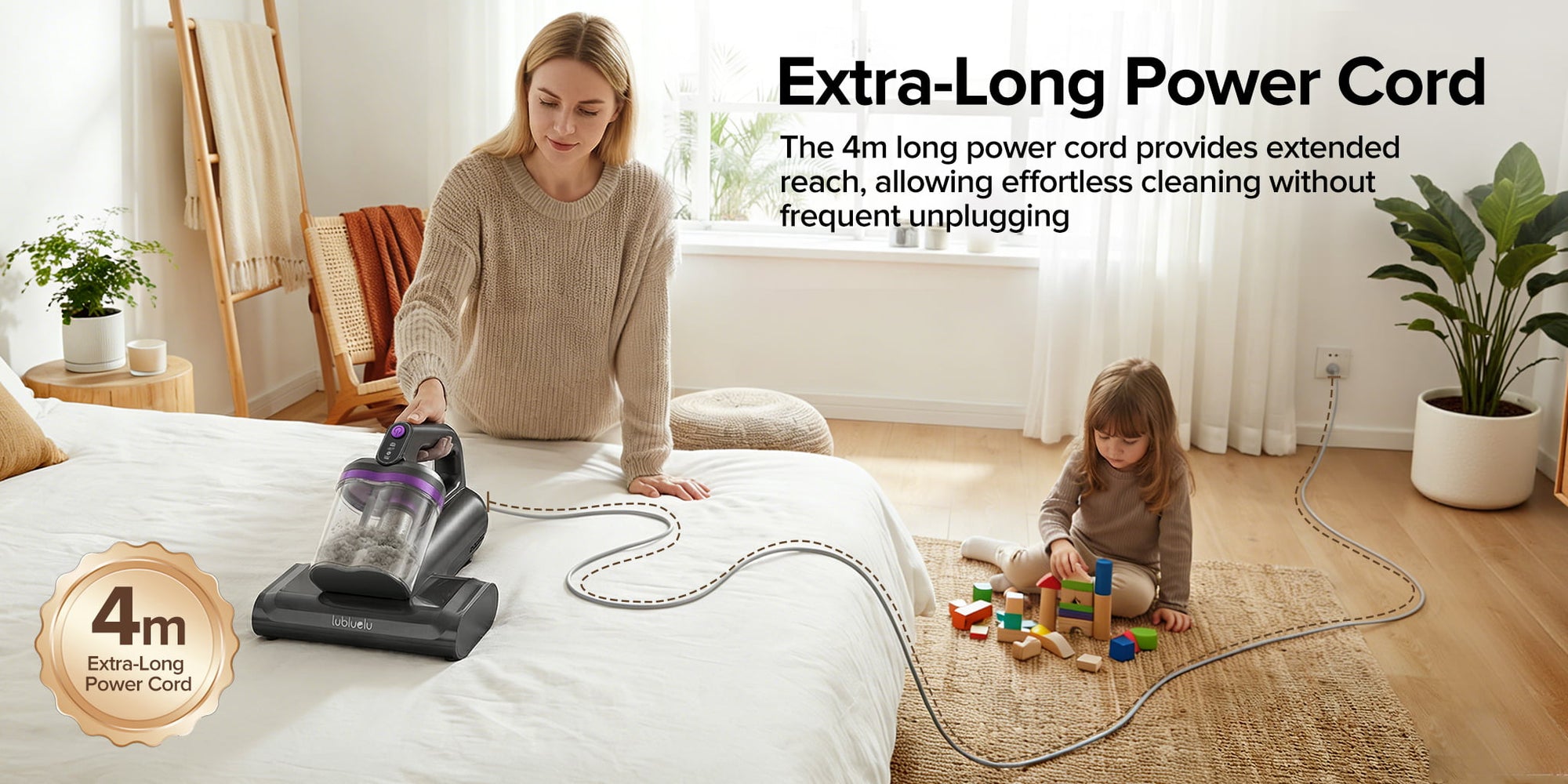 Os colchões e os estofos podem esconder mais do que aparentam. Este aspirador de colchões foi concebido para oferecer uma limpeza mais profunda e cuidada, removendo o pó escondido, reduzindo a humidade e ajudando a manter um ambiente de sono mais limpo ao longo do tempo. Com uma combinação equilibrada de limpeza e secagem, promove a higiene diária e proporciona um conforto duradouro e tranquilidade para a sua casa.